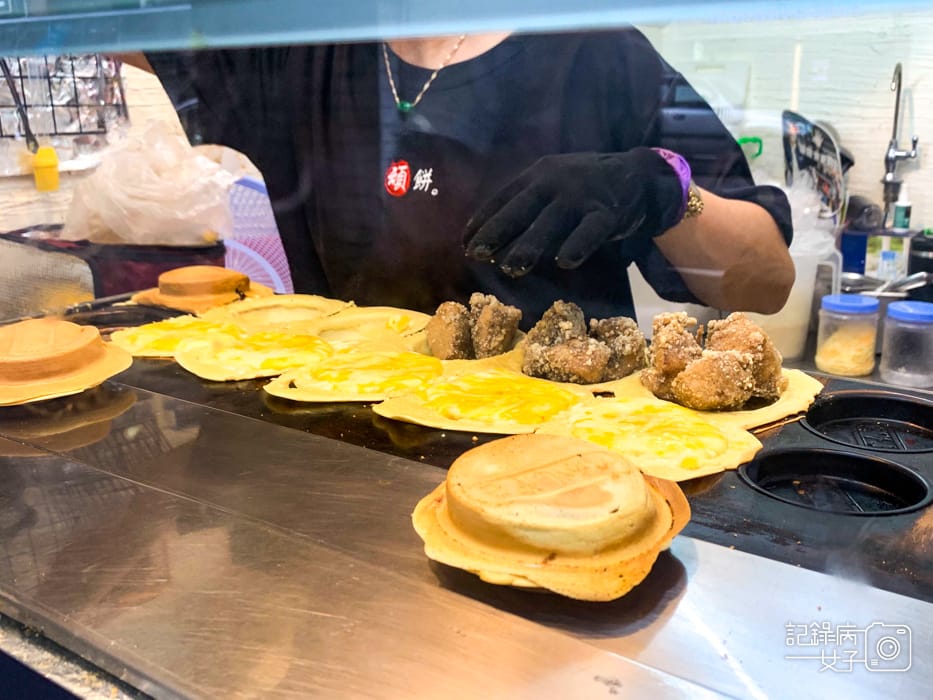 烹飪區就正在香噴噴製作蛋餅中,油的用量非常多,有點像是炸彈蔥油餅的概念